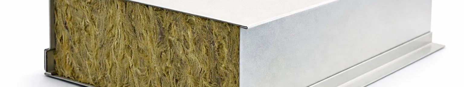 Panel sandwich Rockwool dengan ketahanan api tinggi (Grade A1) untuk keamanan maksimal bangunan industri.