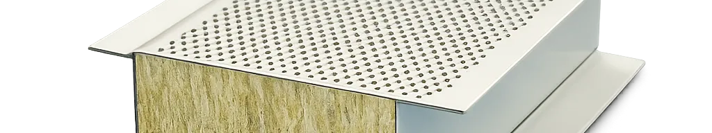 Permukaan perforated dan inti rockwool bekerja bersama untuk meningkatkan absorpsi suara pada ruang tertutup.